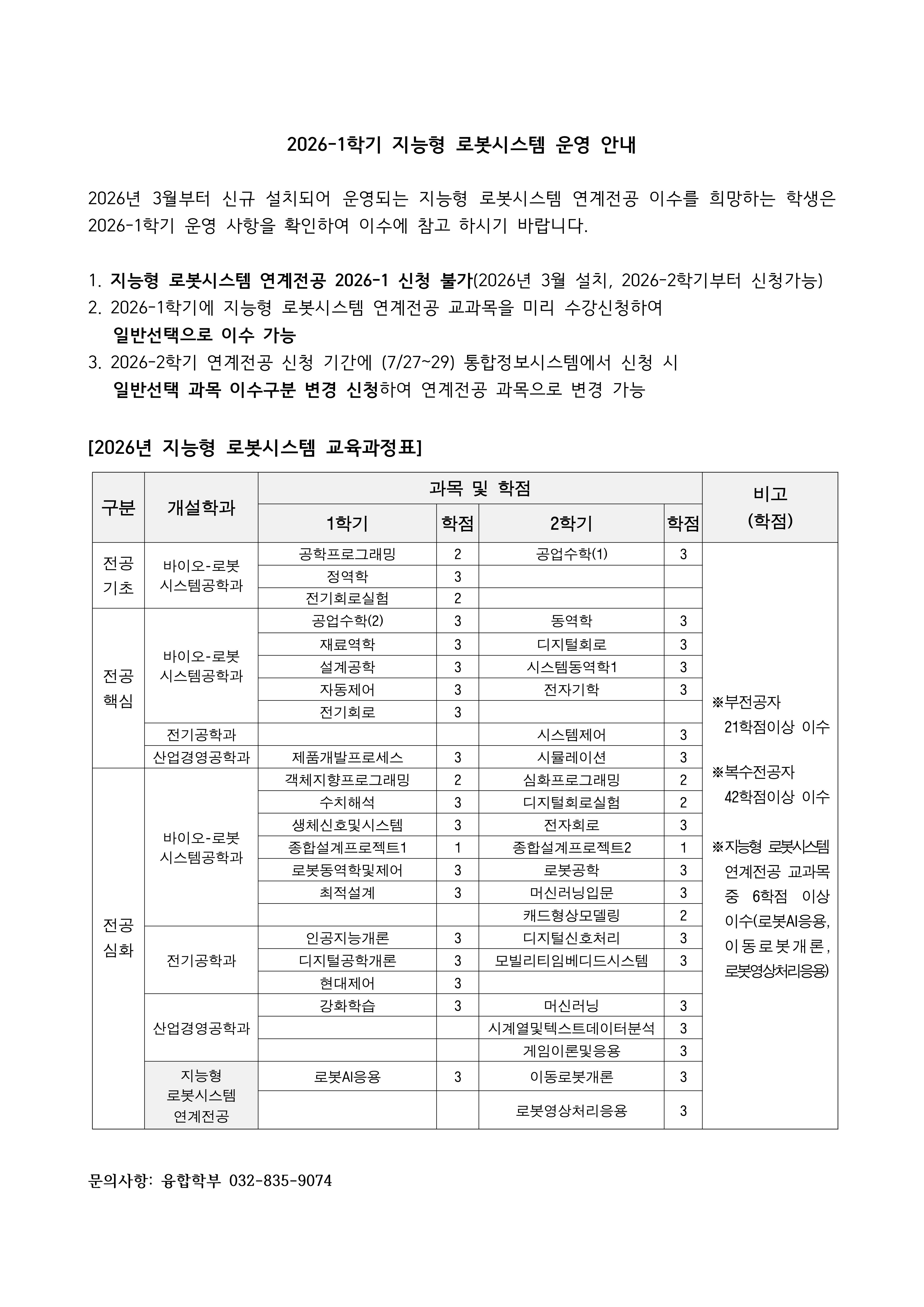 2026-1 지능형 로봇시스템 연계전공 운영안내