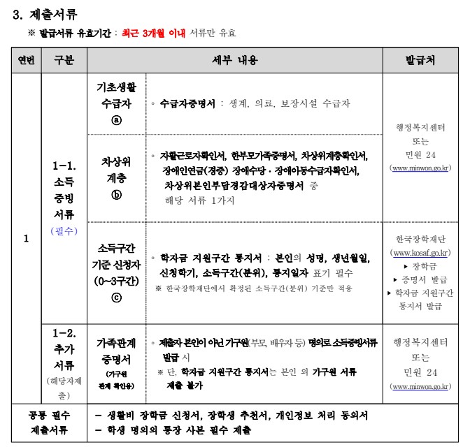 - 한국장학재단 학자금 지원구간 3구간 이내인 자 (※기초생활수급자, 차상위계층 위주로 선발)