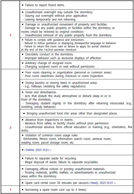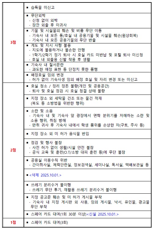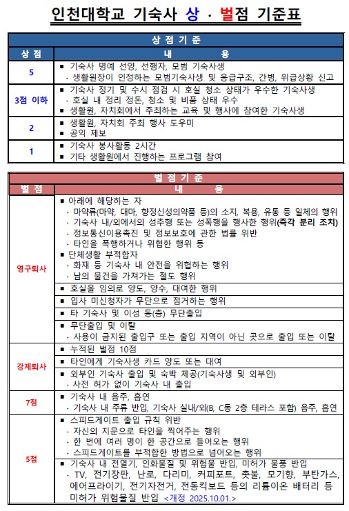 기숙사생 생활수칙의 상·벌점표를 게시하오니 기숙사 생활에 참고하시기 바랍니다.