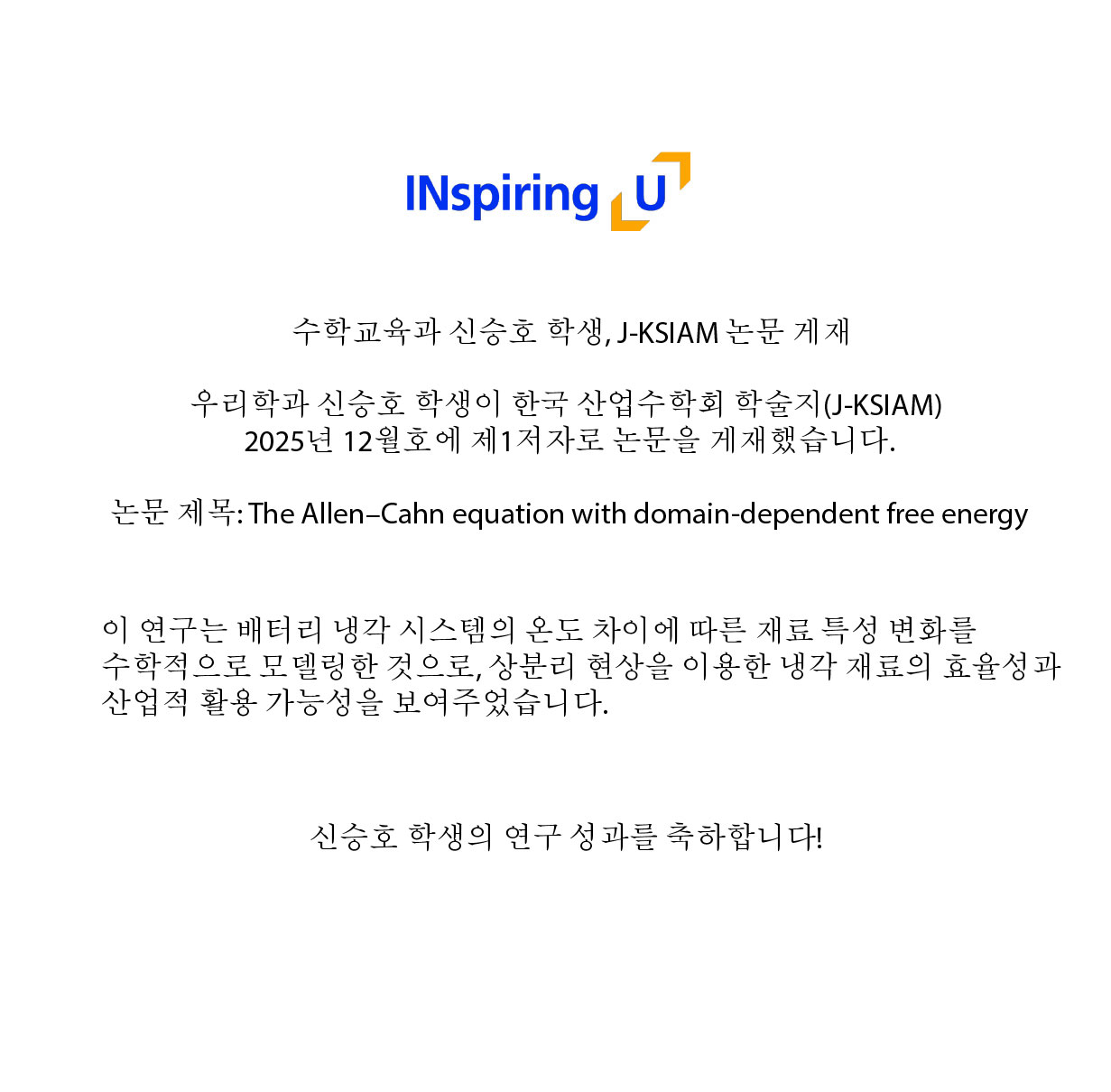 우리학과 신승호 학생이 한국 산업수학회 학술지(J-KSIAM)