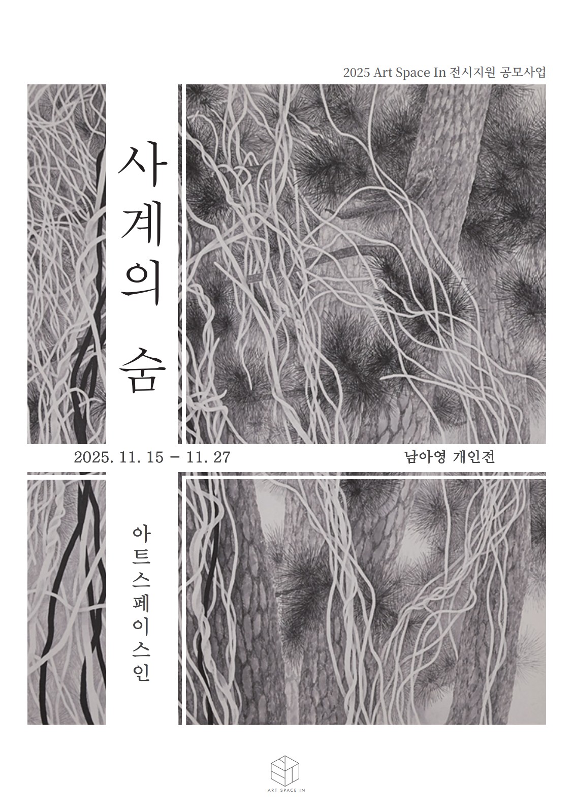 ‘나의 정원’은 관계가 머무는 이상적 공간이자, 내면의 숨결이 깃드는 장소이다. 생성과 소멸, 채움과 비움, 불안과 안정이 교차하는 가운데, 소나무와 넝쿨 줄기는 서로의 독립성을 지키며 조화로운 형태를 이룬다. 반복되는 선의 겹침과 여백의 호흡 속에서, 나는 ‘나의 정원’ 안에 담긴 감정의 결을 그리고, 부정적인 감정을 비워낸 자리를 생명의 움직임으로 채운다.