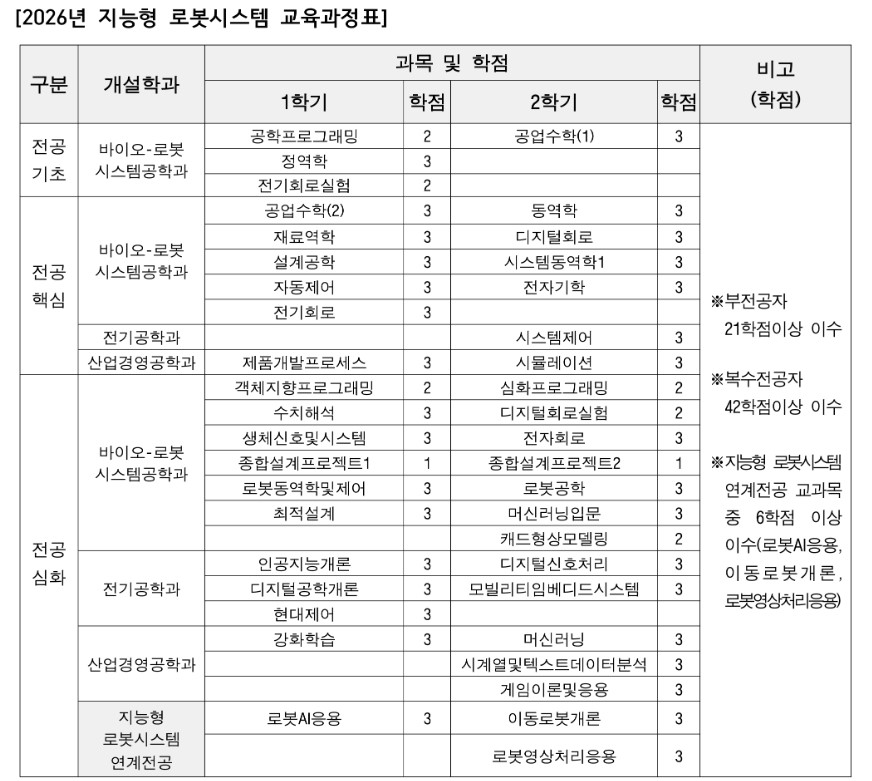 1. 지능형 로봇시스템 연계전공 2026-1학기 신청 불가(2026년 3월 설치, 2026년 2학기 부터 신청 가능)