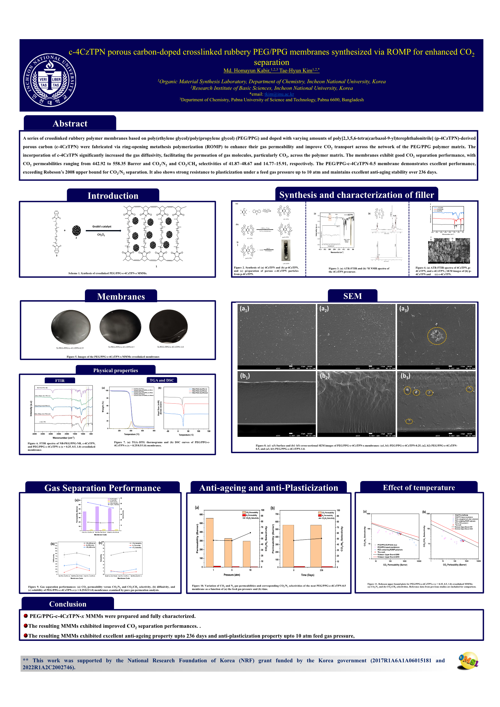 c-4CzTPN porous carbon-doped crosslinked rubbery PEG/PPG membranes synthesized via ROMP for enhanced CO2 separation |