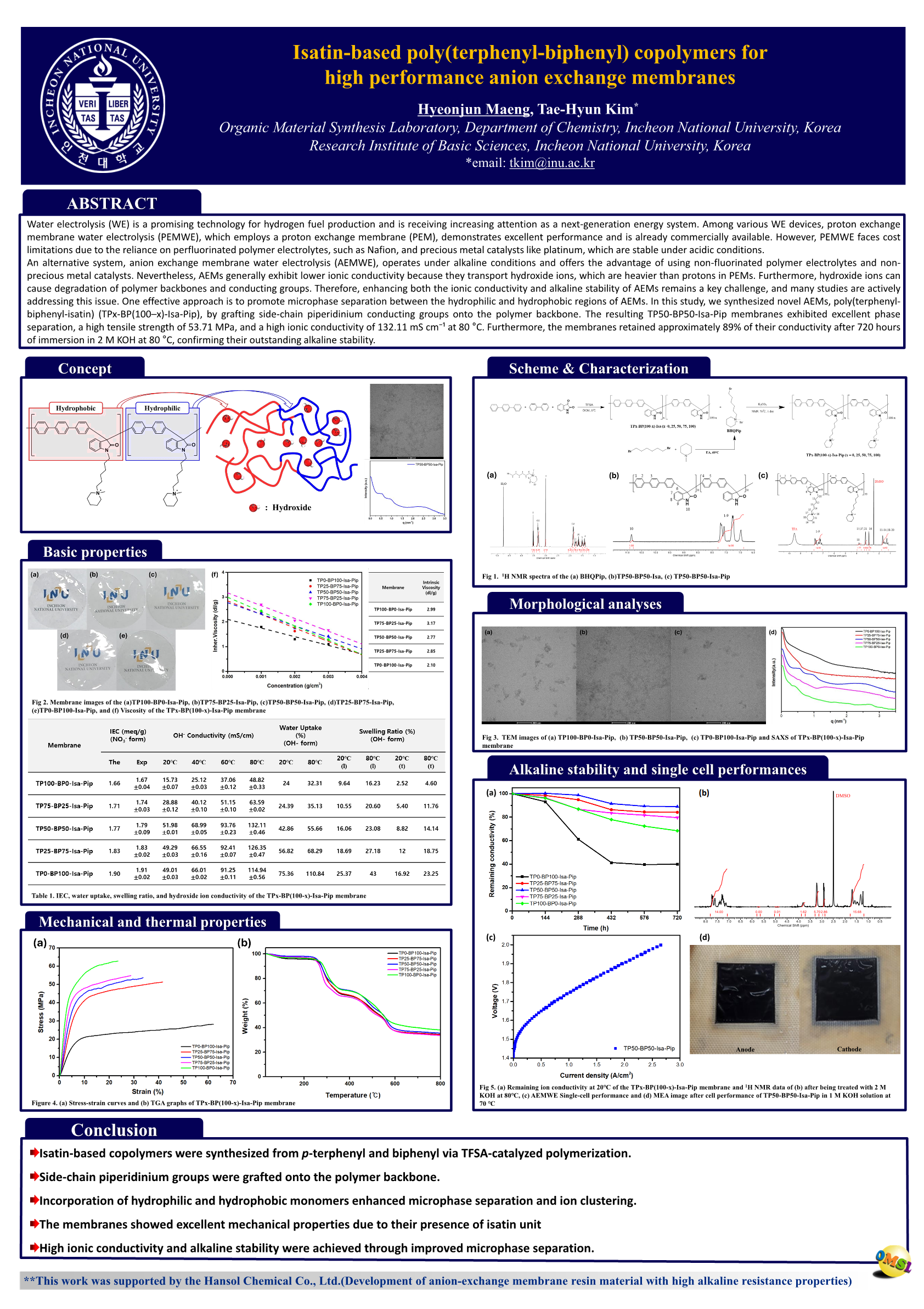 Isatin-based poly(terphenyl-biphenyl) copolymers for high performance anion exchange membranes |