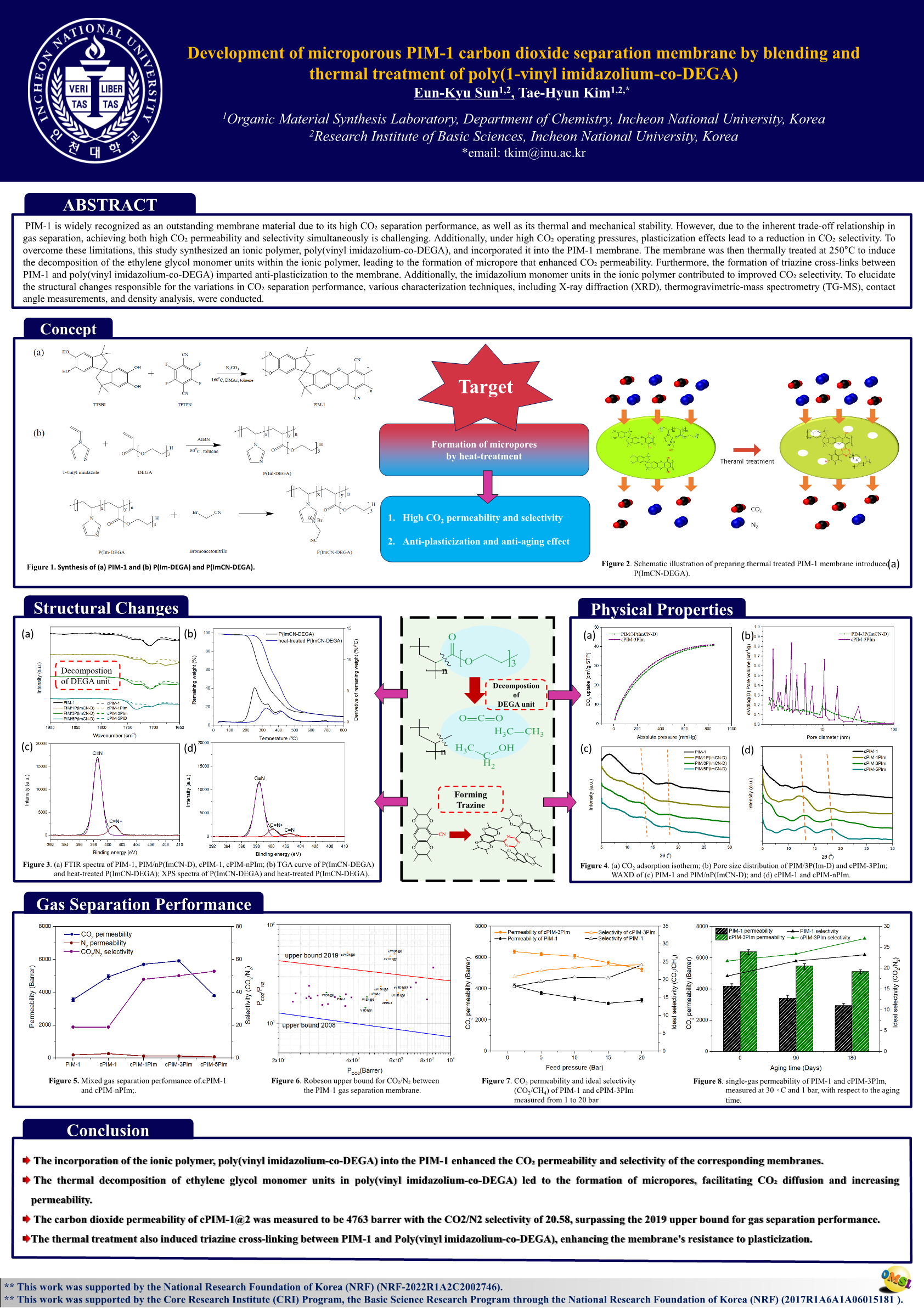 Development of microporous PIM 1 carbon dioxide separation membrane by blend and thermal treatment of poly(1 vinyl imidazolium co DEGA) |