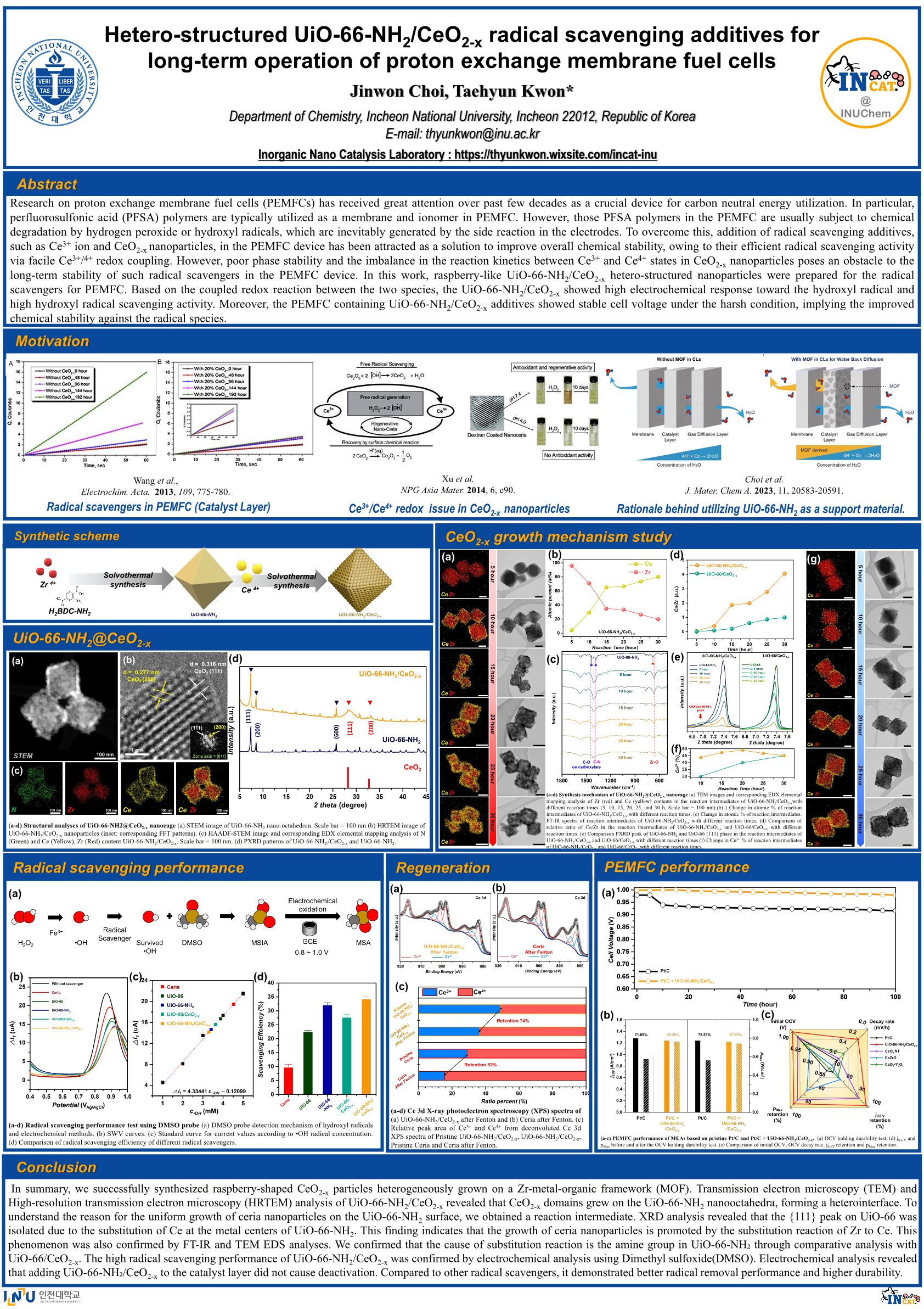 Hetero-structured UiO-66-NH2/CeO2-x radical scavenging additives for long-term operation of proton exchange membrane fuel cells |