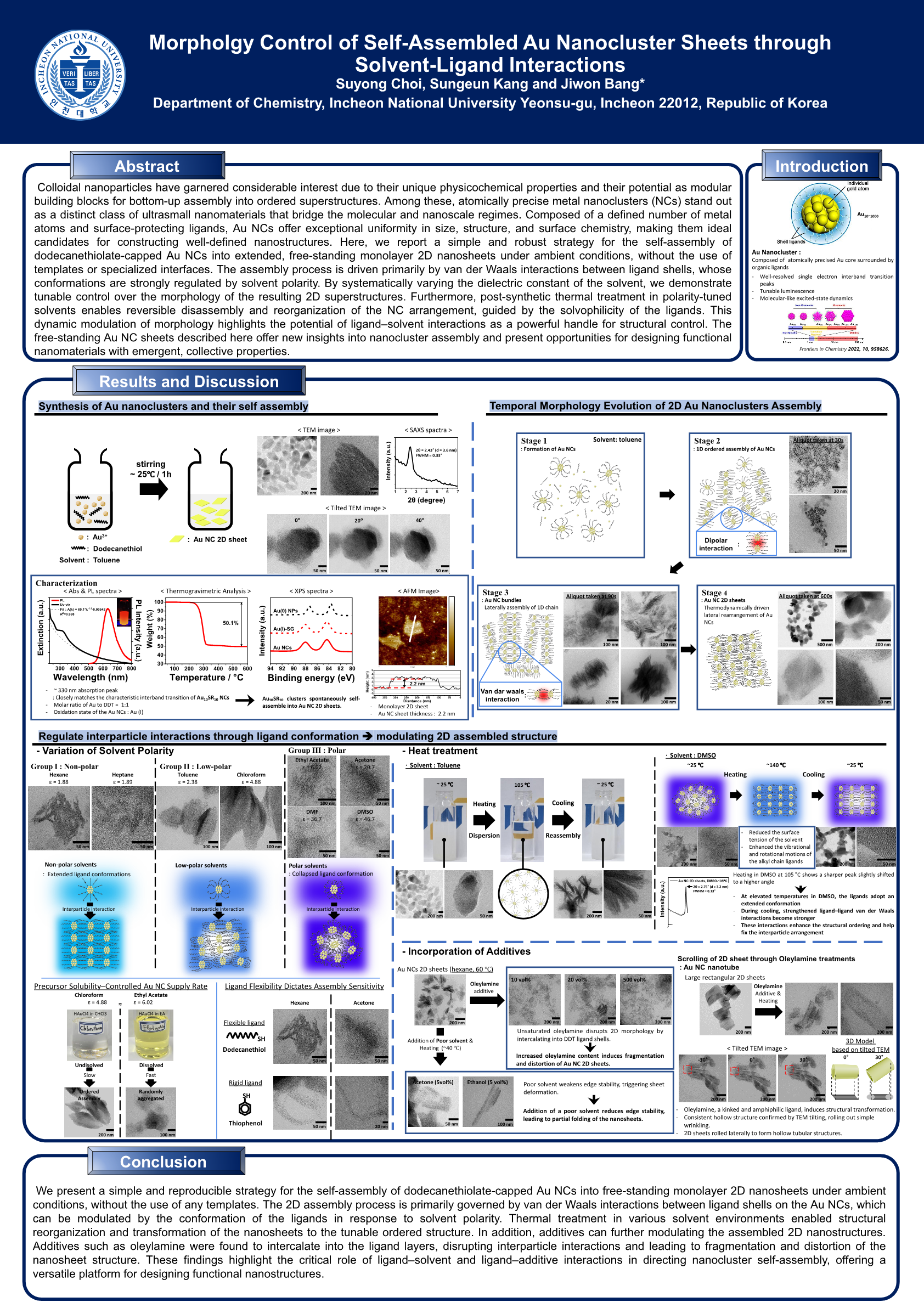 Morpholgy Control of Self-Assembled Au Nanocluster Sheets through Solvent-Ligand Interactions |