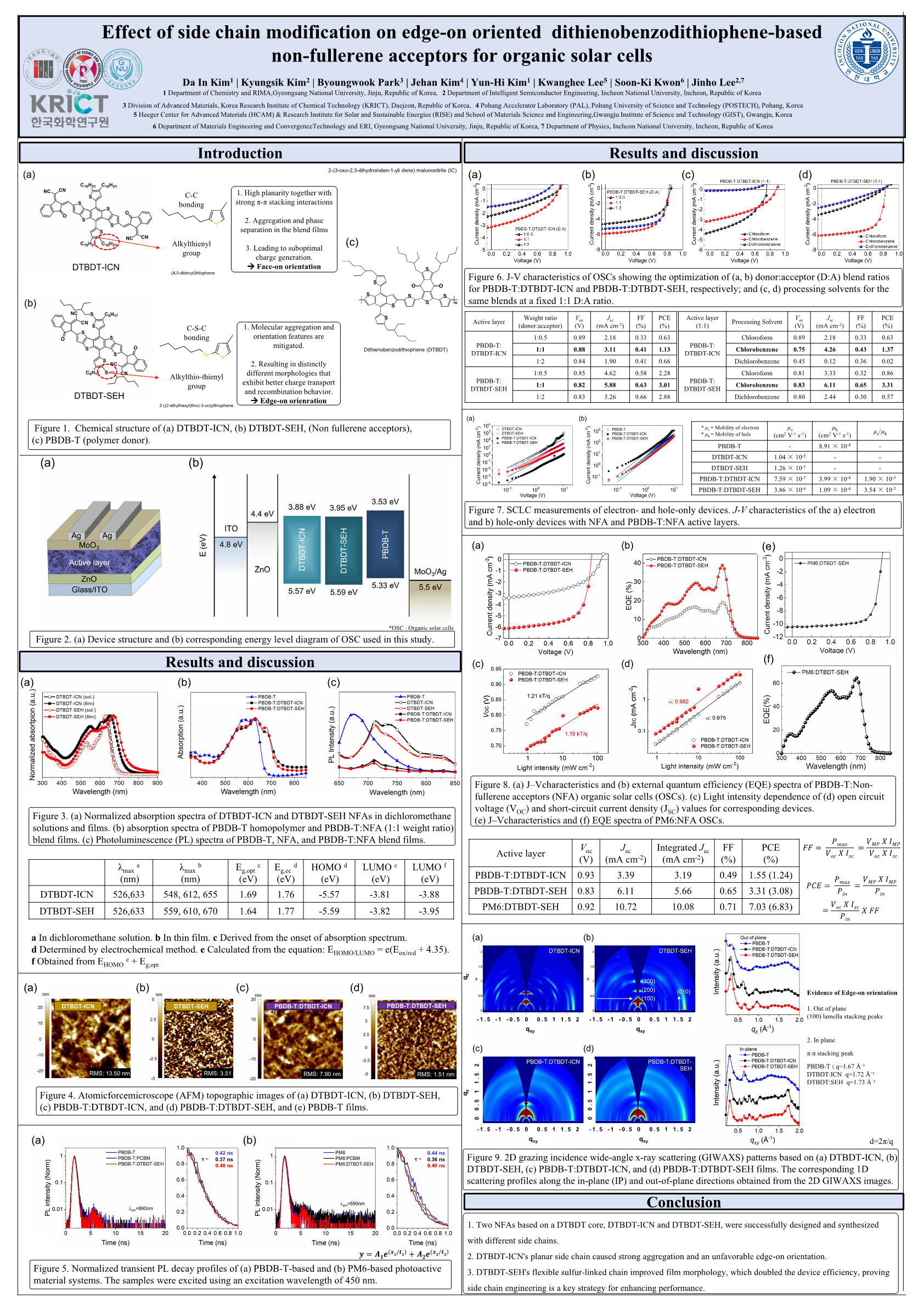 Effect of side chain modification on edge-on oriented dithienobenzodithiophene-based non-fullerene acceptors for organic solar cells |