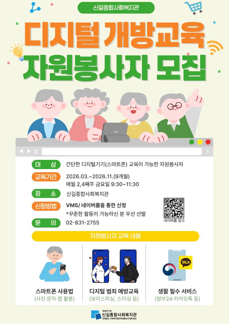 저희 복지관에서는 지역주민분들의 디지털 격차 해소를 위한 '디지털 개방교육'을 진행하고 있으며,