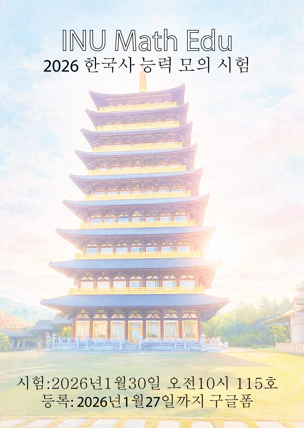 인천대학교 수학교육과에서는 2026년 INU Math Edu 한국사 능력 모의시험을 실시합니다.