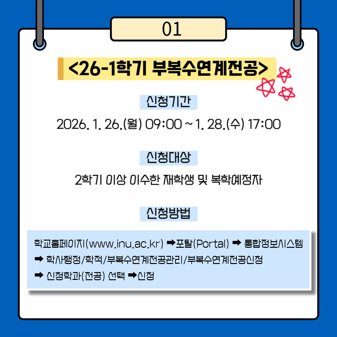 [안내] 2026학년도 1학기 부·복수전공 신청 안내 (~1월 28일 17시까지)