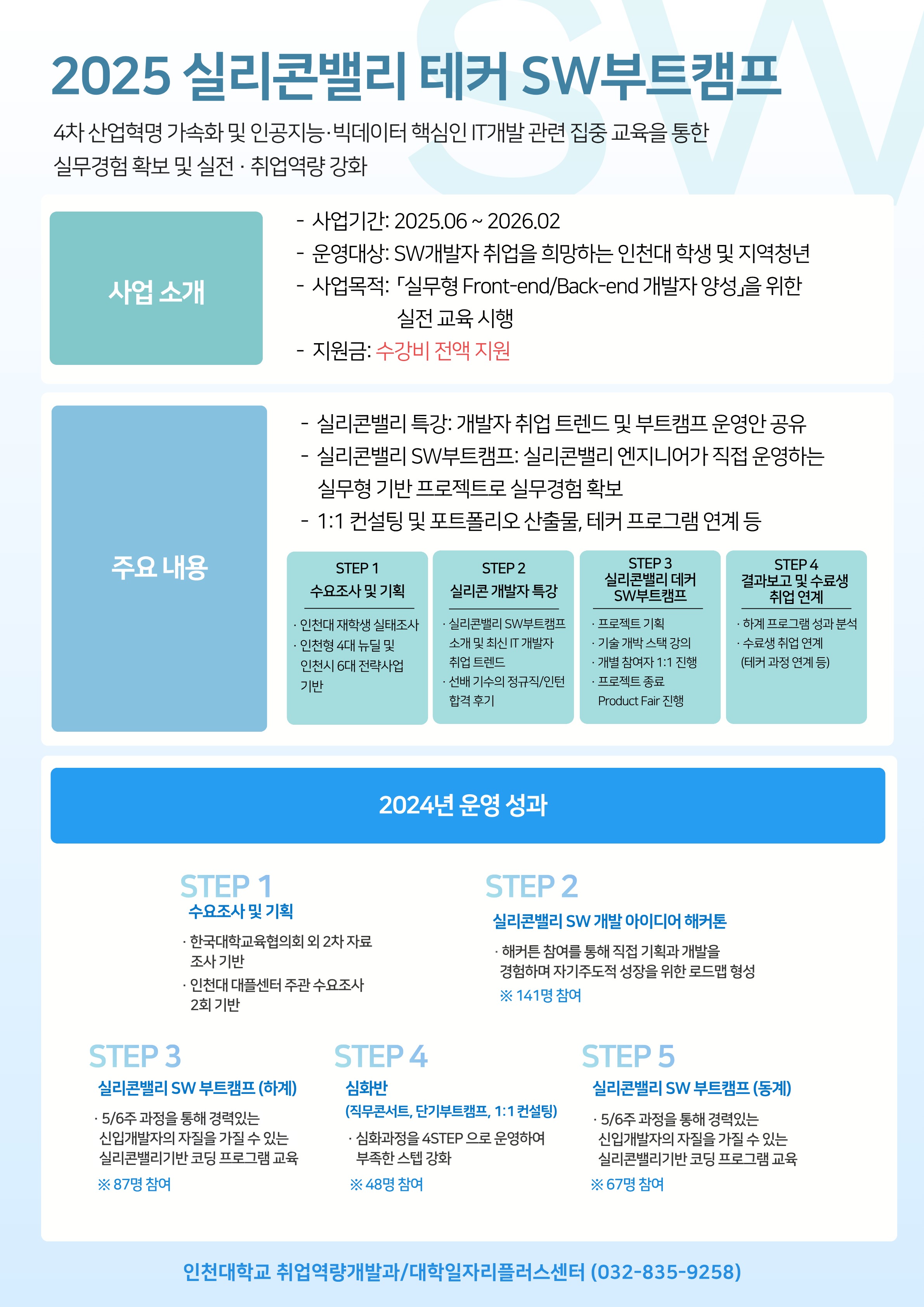 | 4 | 직무부트캠프 | 기업실무자와의 현업 프로젝트 수행 및 발표 | 3월 ~ 10월 |