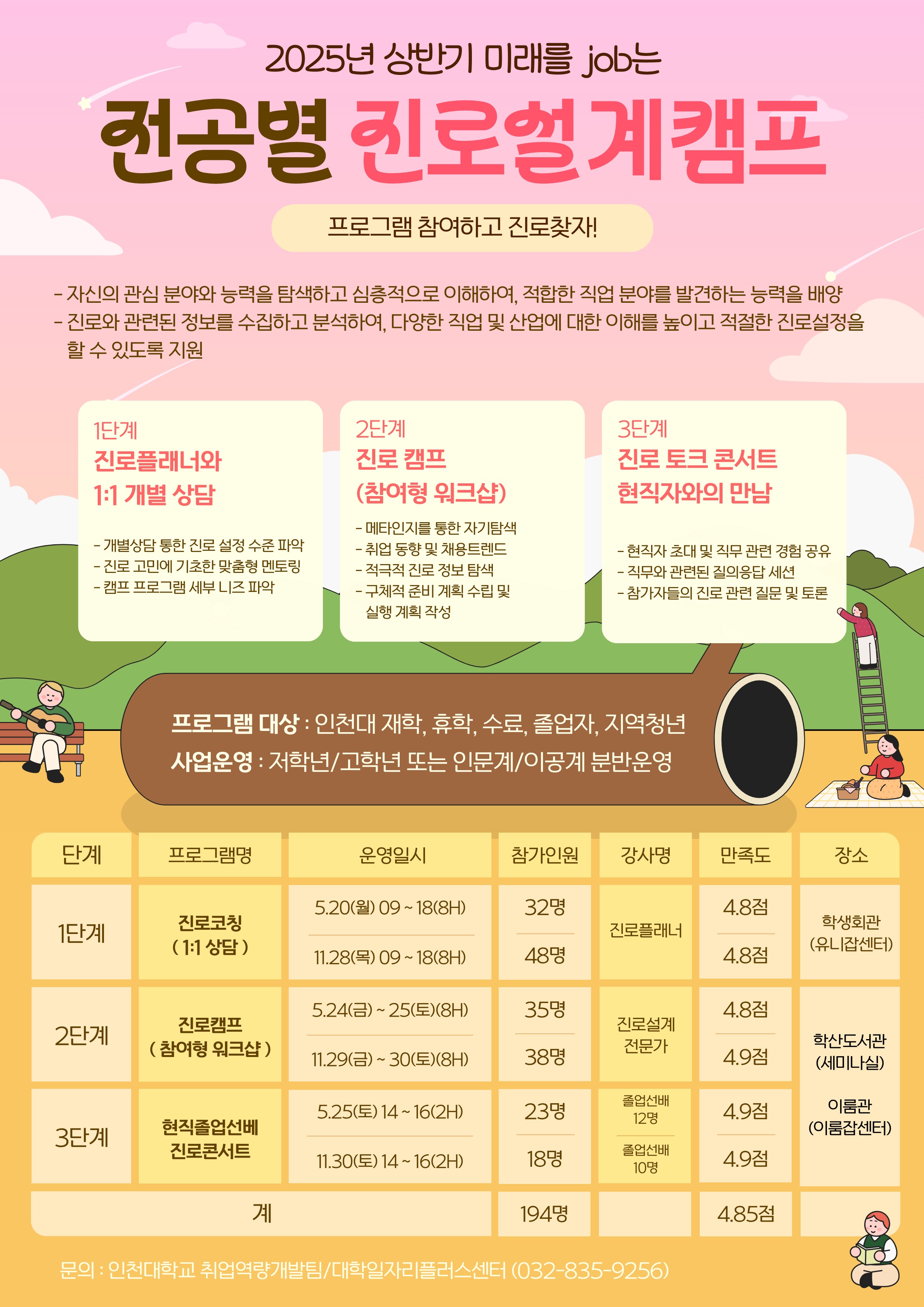 | 4 | INU 진로코칭 | 진로 탐색과 설계에서 발생하는 진로 고민 문제 유형별 코칭 | 3월~익년1월 |