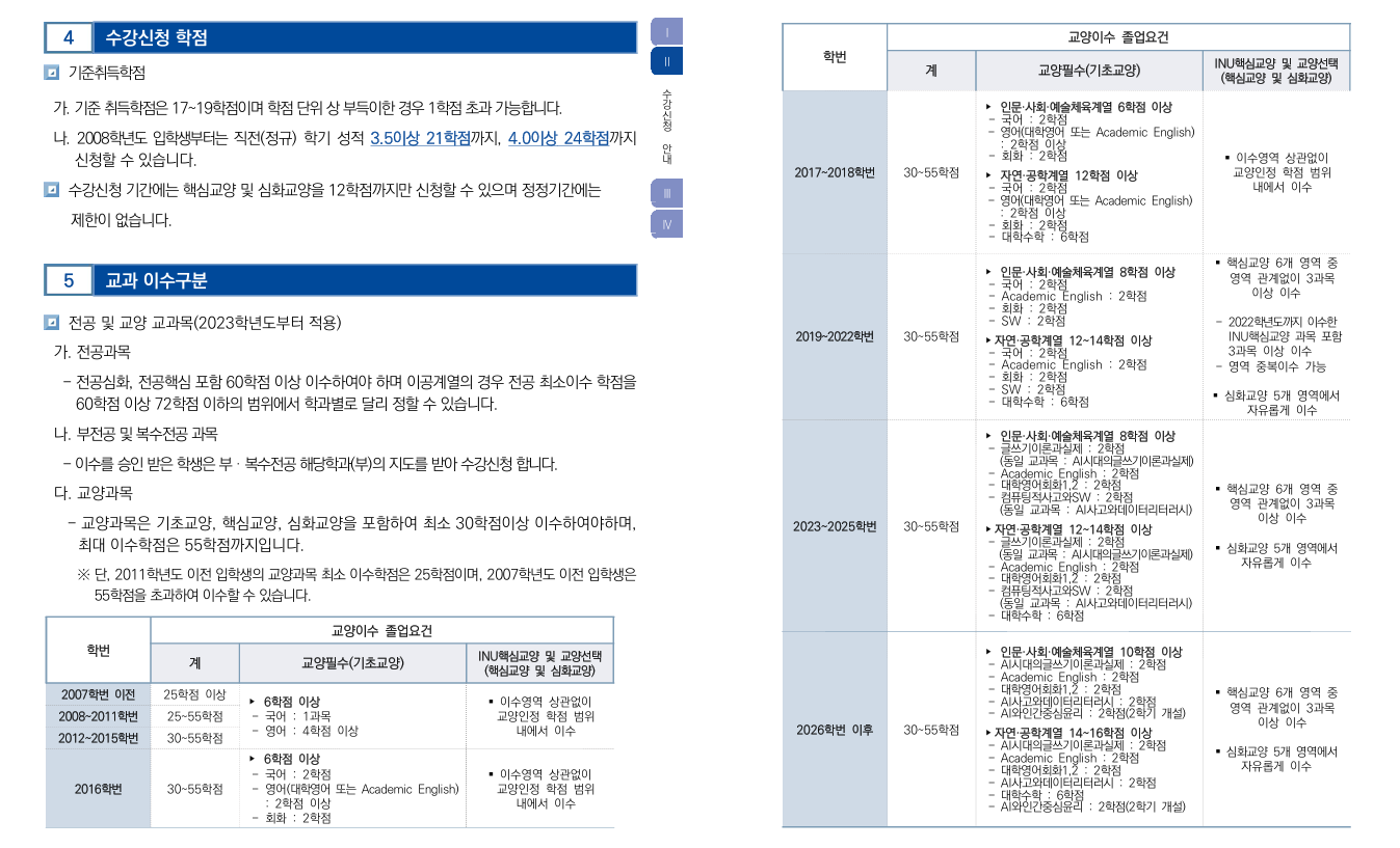 fnctId=bbs,fnctNo=286 교양이수 졸업요건(수강신청편람 발췌) 글번호 419230 작성일 2026-02-10 수정일 2026-02-10 작성자 국어국문학과 (032-835-8110) 조회수 360 첨부파일 첨부파일이(가) 없습니다. 다음글 이전글 2023학년도 이후 개편된 교양 교육과정 졸업요건 관련 주요사항 노희원 2026-02-10 10:54:58.0 목록