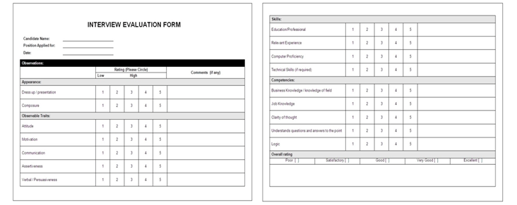 - 크게 Appearance, Observable Traits, Skills, Competencies 4부분으로 나누어 평가